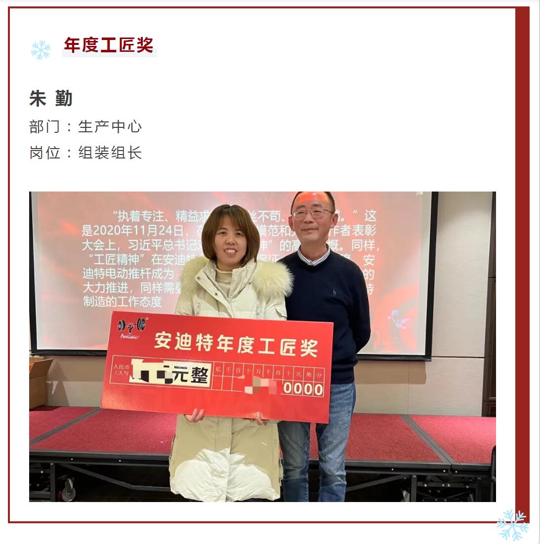 總經(jīng)理親自頒發(fā)了年度特別獎項。這一時刻彰顯了公司對員工辛勤工作的肯定和感謝。