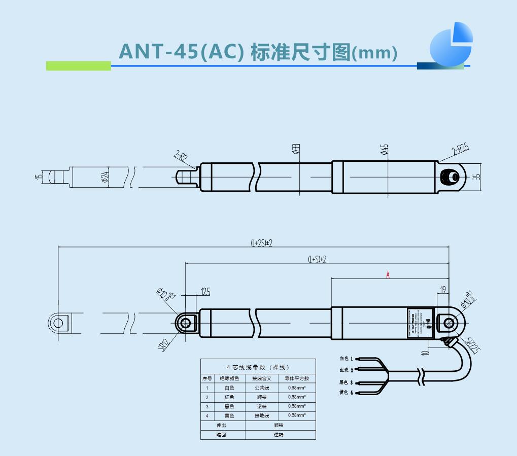 - ANT-45是一款230V AC交流輸入的電動推桿,可在電壓波動的情況下保持恒定的速度。