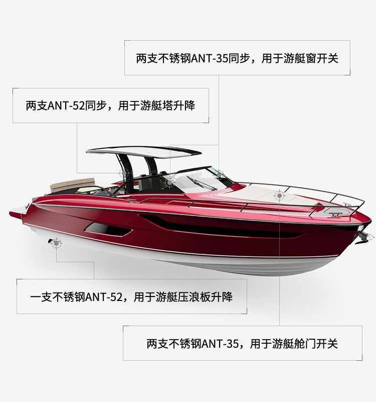 安迪特一直致力于游艇行業(yè)的自動(dòng)化解決方案,眾多的成功案例為我們的工程師團(tuán)隊(duì)和銷售團(tuán)隊(duì)積累了大量的項(xiàng)目經(jīng)驗(yàn)。全不銹鋼材質(zhì)和IP67M防水等級(jí)的安迪特筆式電動(dòng)推桿正為成千上萬的游艇、釣魚艇、摩托艇開關(guān)門窗、開關(guān)艙門、升降游艇塔、升降游艇天線、升降壓浪板等。如今,在各種豪華游艇上隨處可見安迪特筆式電動(dòng)推桿的身影。